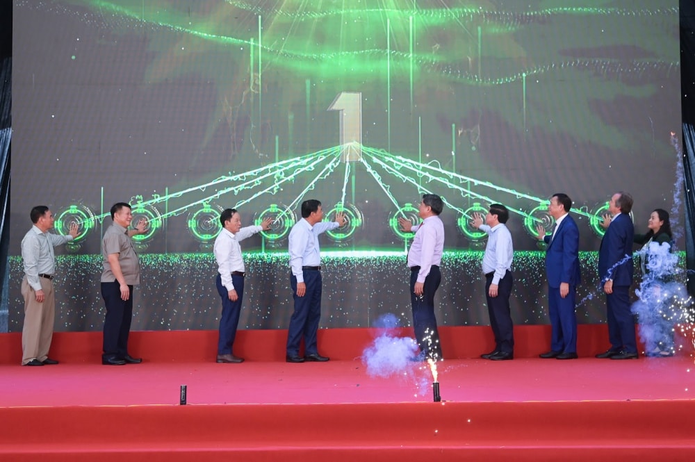 Các đại biểu bấm nút khánh thành dây chuyền đồ hộp giấy Tetra Recart dành cho rau quả với công nghệ Thụy Điển đầu tiên tại Việt Nam.