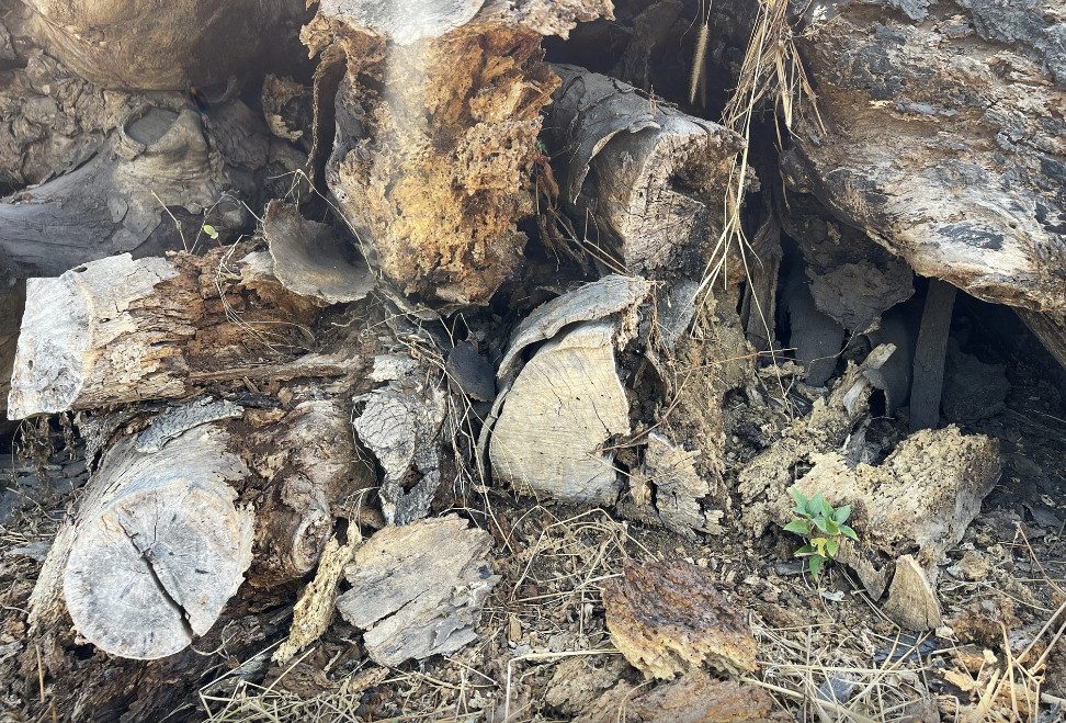 Mối mọt ăn sâu vào thân gỗ, có cây đã mục nát thành các phần nhỏ. Theo đánh giá, gỗ này hầu như không còn giá trị sử dụng – Ảnh: LÊ PHAN