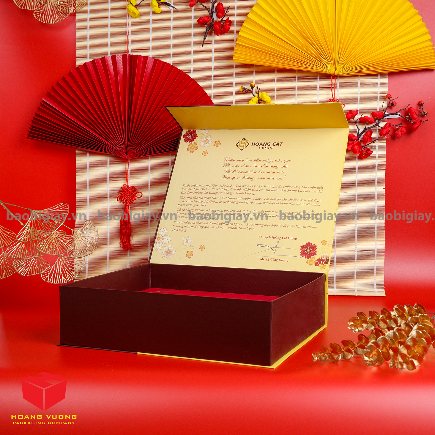 Hộp giấy đựng quà Tết là một lựa chọn phổ biến để đựng quà tặng trong dịp Tết. Các loại hộp giấy đựng quà Tết thường được thiết kế với nhiều kiểu dáng và màu sắc khác nhau, từ hộp giấy đơn giản đến hộp giấy sang trọng và đẹp mắt. Dưới đây là một số mẫu hộp giấy đựng quà Tết mà bạn có thể tham khảo: